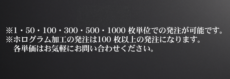 個別にて承ります。指定サイズのデータを入稿して頂きカードに転写します。